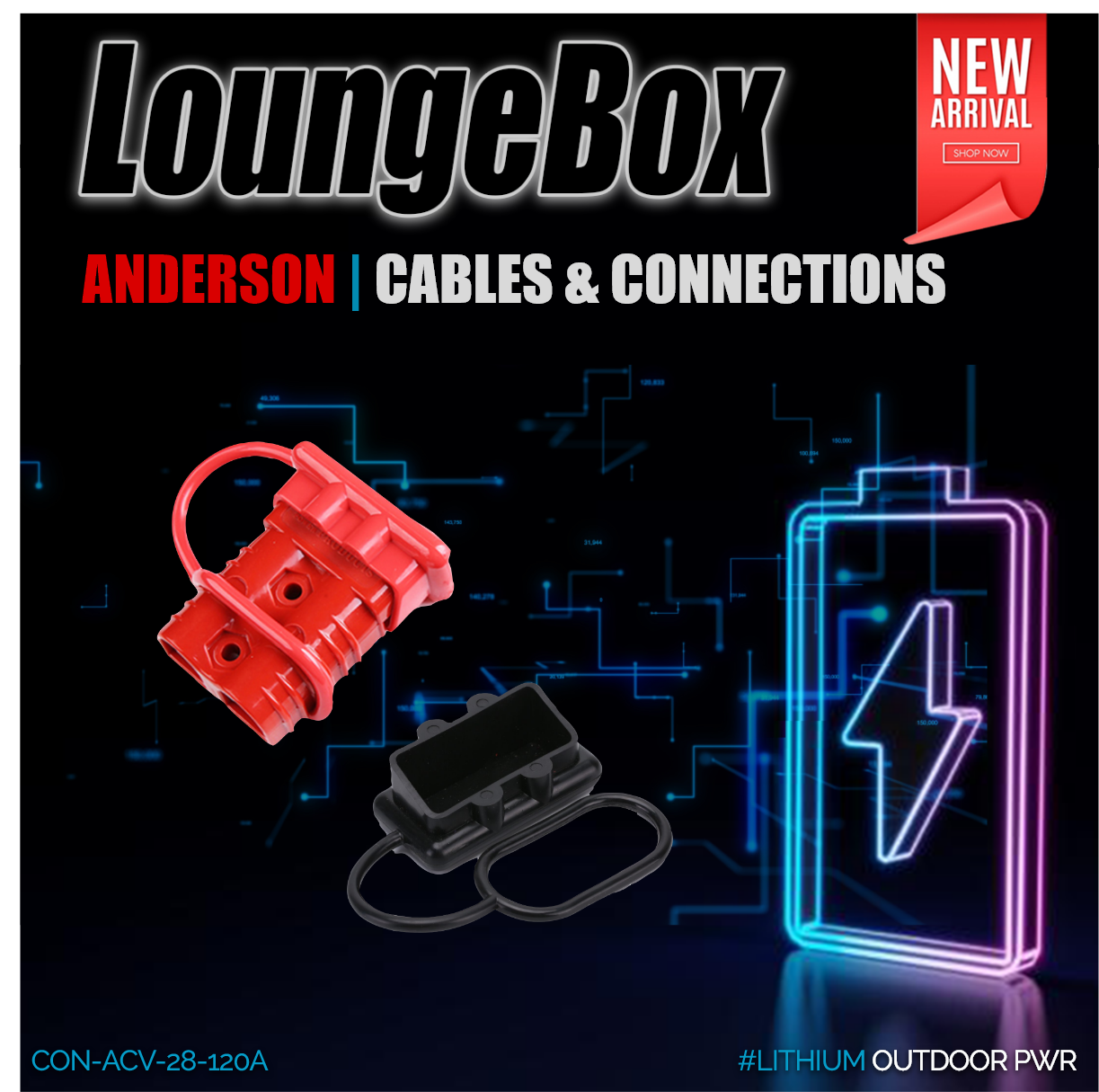 Anderson 50A Red Con | 75A black cable 1250mm |...